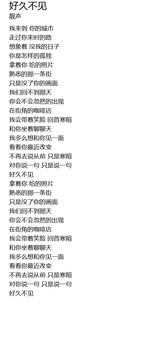 | [03:42.349] | hǎo jǐu bu jiàn |