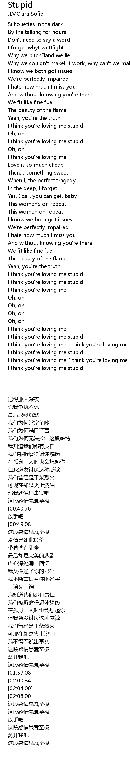| [01:39.11] | I think you're loving me stupid |