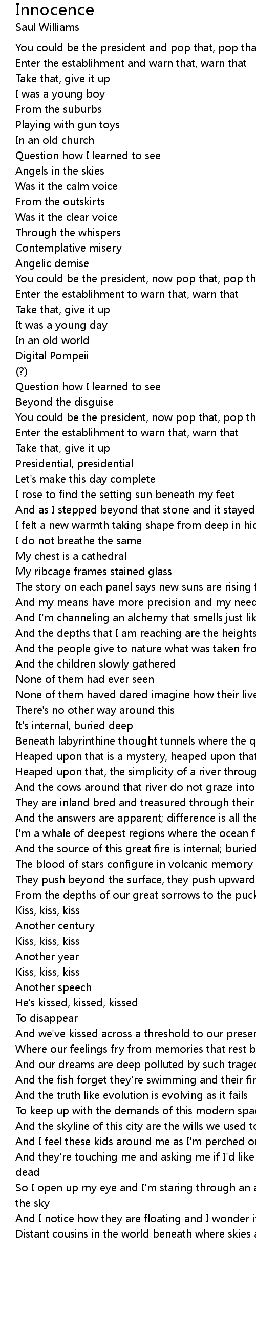 From the depths of our great sorrows to the pucker of a mouth |