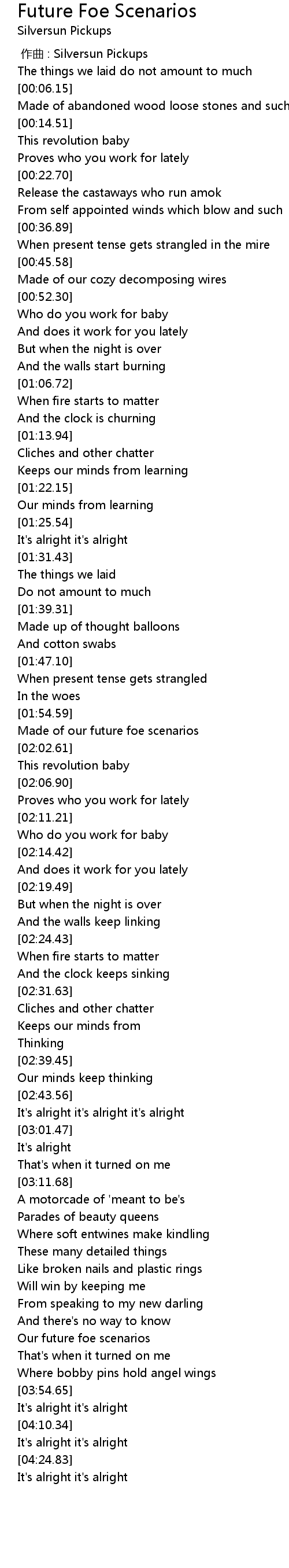 | [00:00.00] | zuo qu : Silversun Pickups |