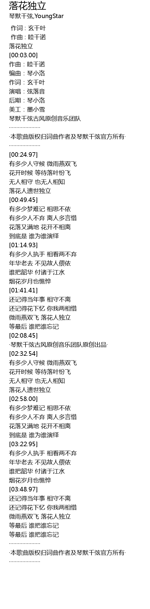 | [02:09.32] | ·琴默千弦古风原创音乐团队原创出品· |