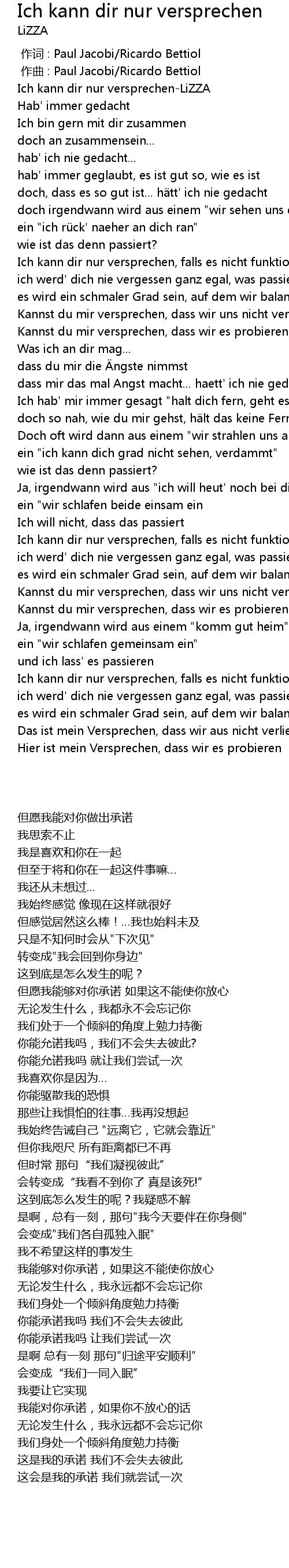 | [00:00.00] | Ich kann dir nur versprechenLiZZA |
