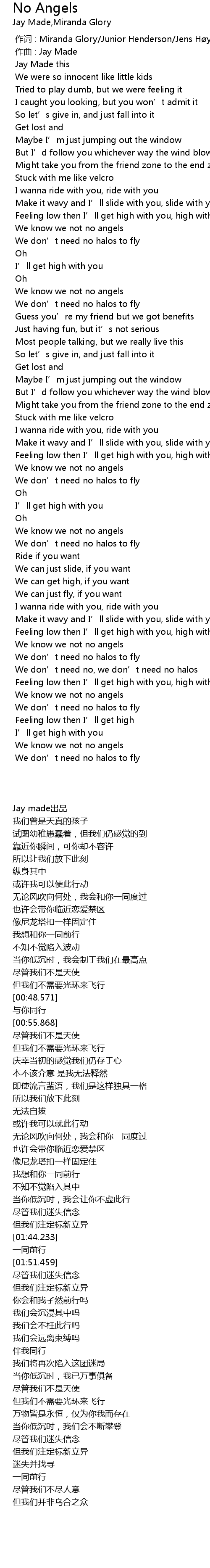 | [00:00.000] | 作词 : Miranda Glory/Junior Henderson/Jens Høy |