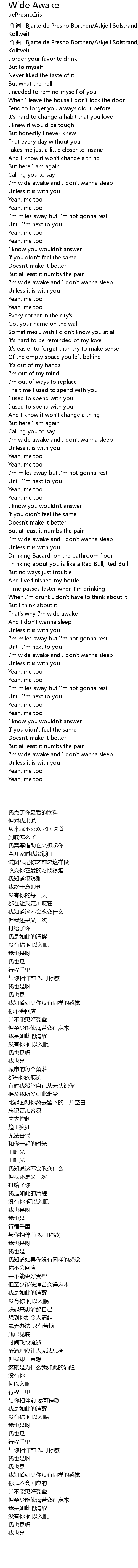 | [02:21.81] | I'm wide awake and I don't wanna sleep |