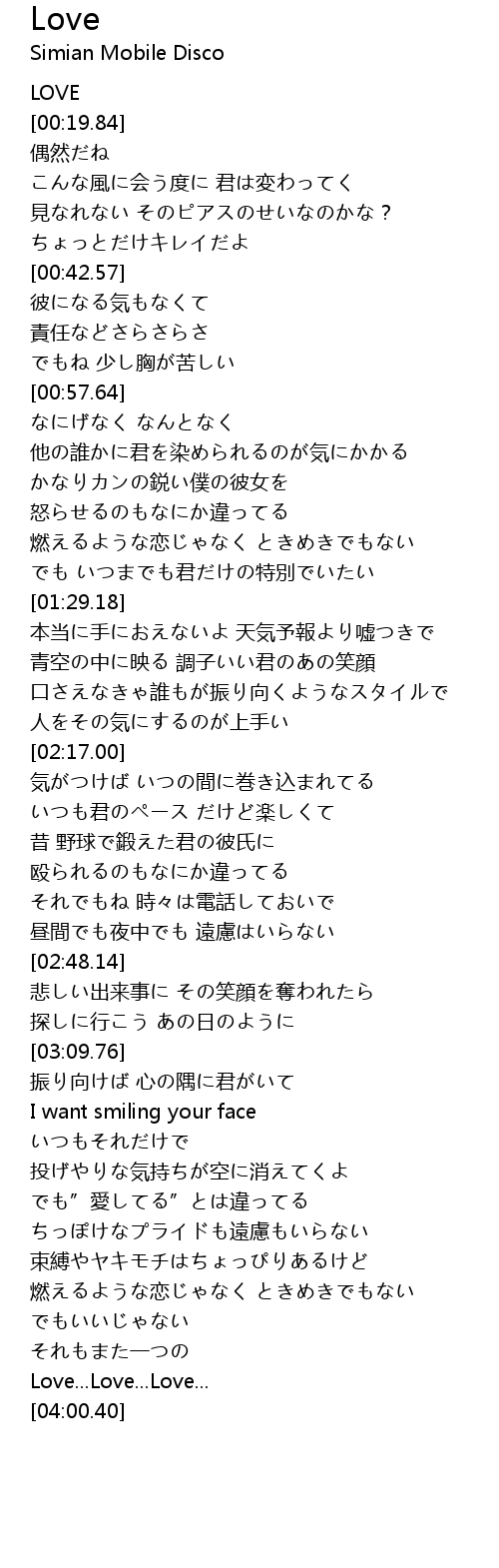 | [03:25.78] | でも”愛してる”とは違ってる |