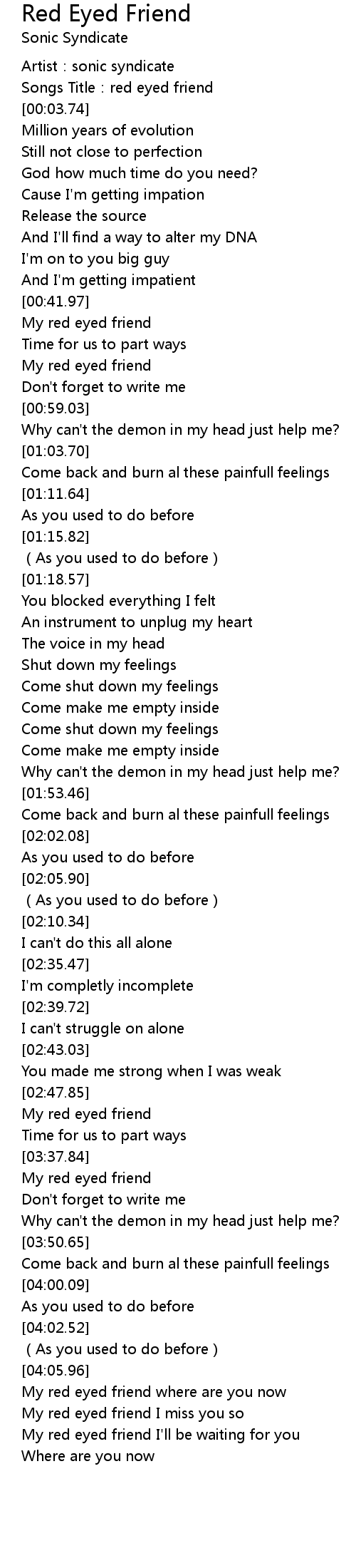 | [03:38.78] | My red eyed friend |