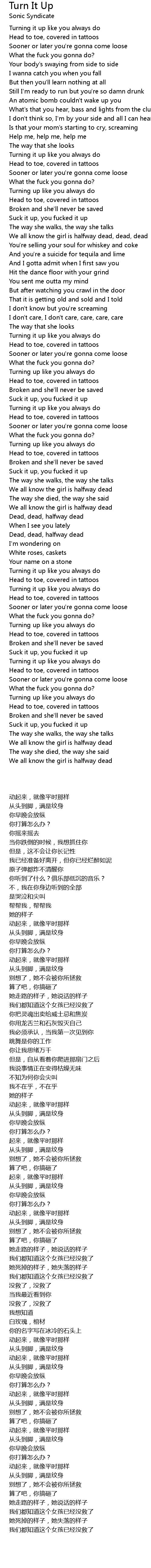 We all know the girl is halfway dead, dead, dead |