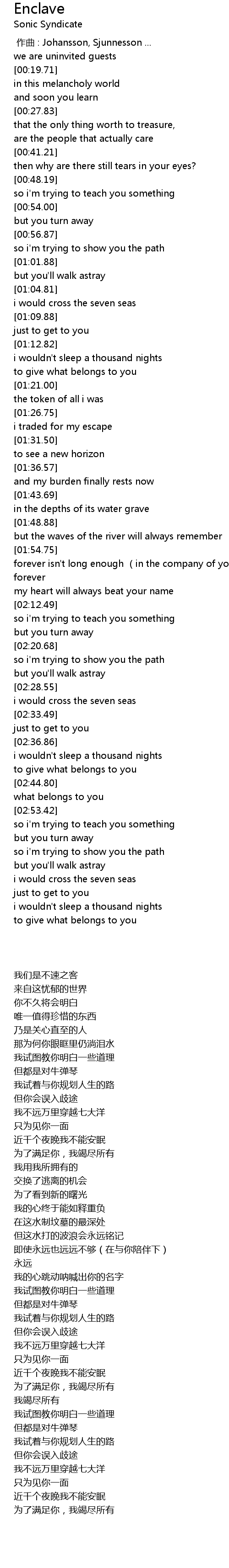 | [00:00.00] | zuò qǔ : Johansson, Sjunnesson ... |