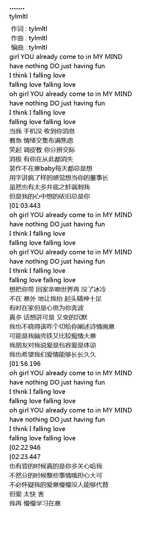| [00:14.164] | girl YOU already come to in MY MIND |