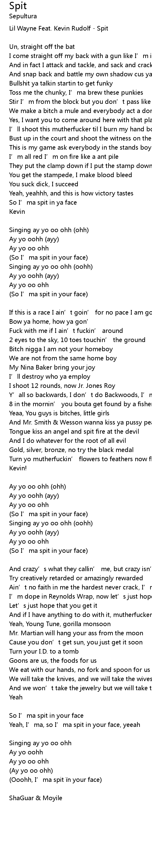 | Lil Wayne Feat. Kevin Rudolf Spit | |