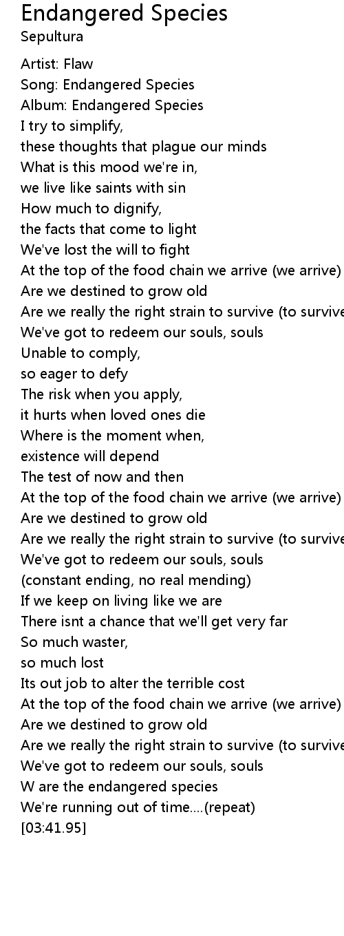 | [02:00.38] | At the top of the food chain we arrive (we arrive) |