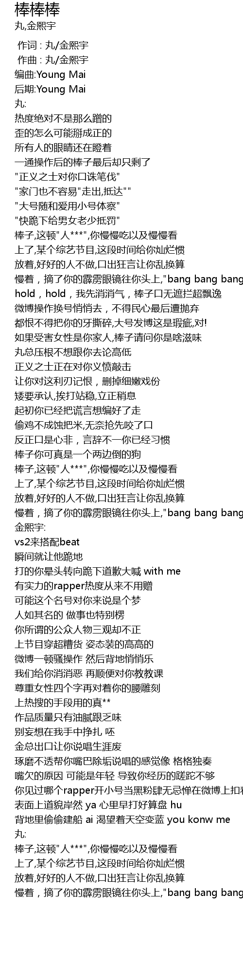 | [02:18.672] | ni jian guo nei ge rapper kai xiao hao dang hei fen si wu ji dan zai wei bo shang kou zhe jian pan |