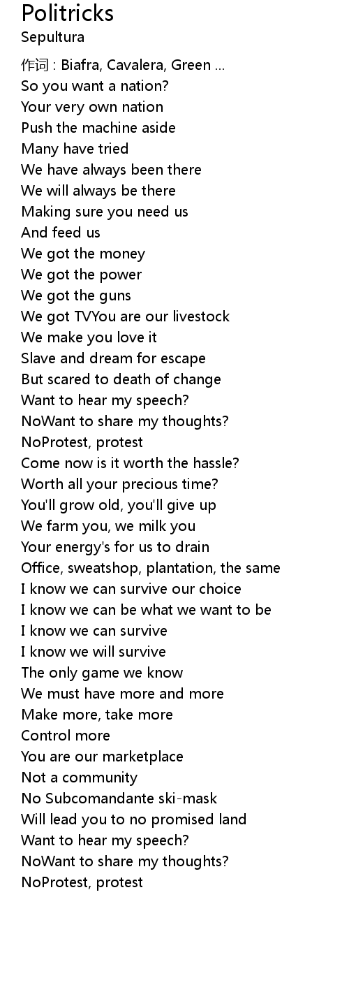 | zuò cí : Biafra, Cavalera, Green ... | |
