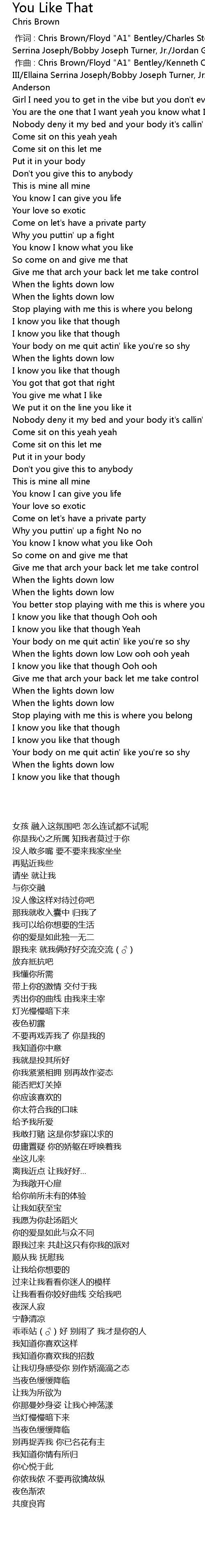 | [00:00.00] | zuò cí : Chris Brown Floyd " A1" Bentley Charles Stephens III Ellaina Serrina Joseph Bobby Joseph Turner, Jr. Jordan George Lyrica Anderson |