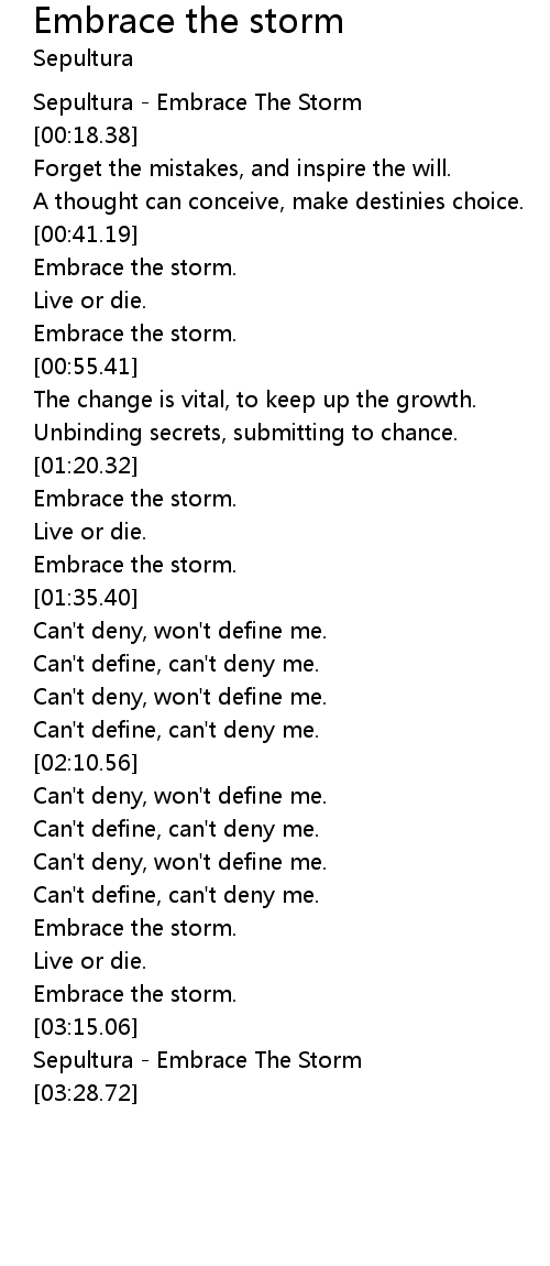 | [03:16.32] | Sepultura - Embrace The Storm |