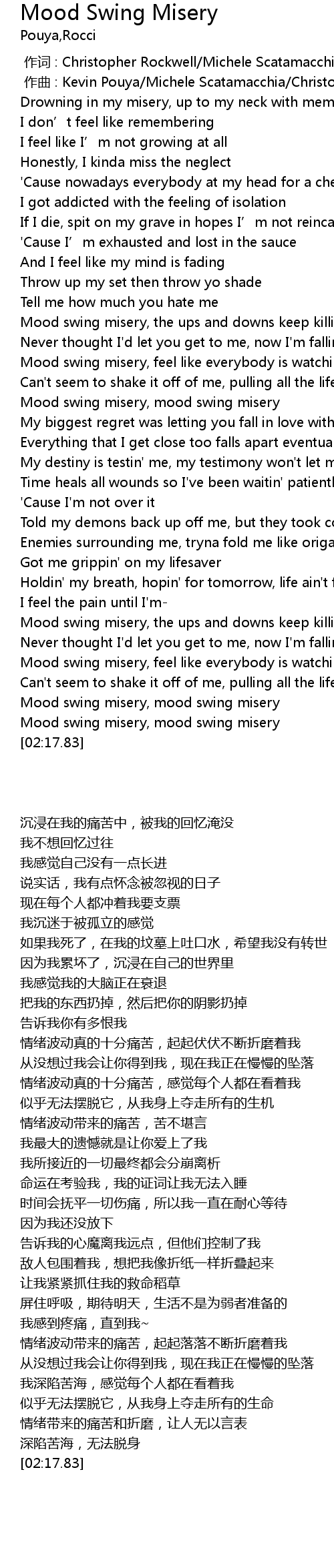 | [00:57.24] | Mood swing misery, mood swing misery |