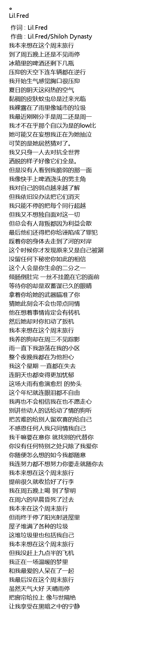 | [00:00.000] | 作词 : Lil.Fred |