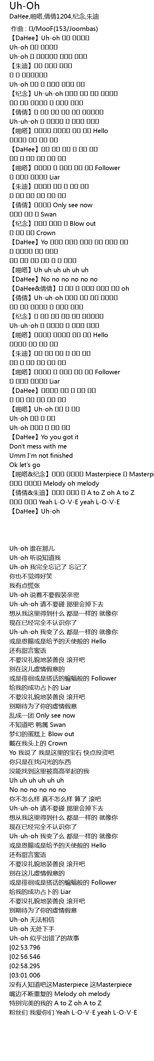 | [01:50.087] | pā dā Uh uh uh uh uh uh |