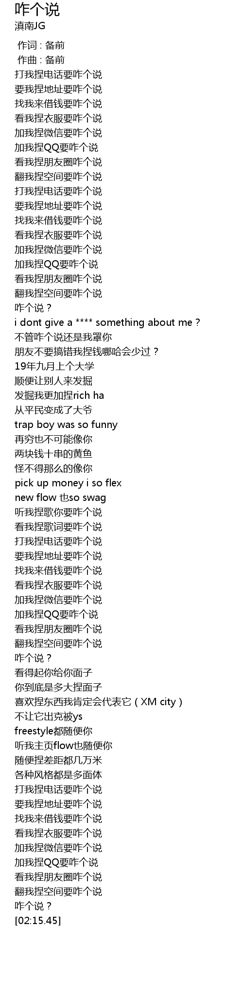 | [00:15.28] | yào wǒ niē dì zhǐ yào zǎ gè shuō |
