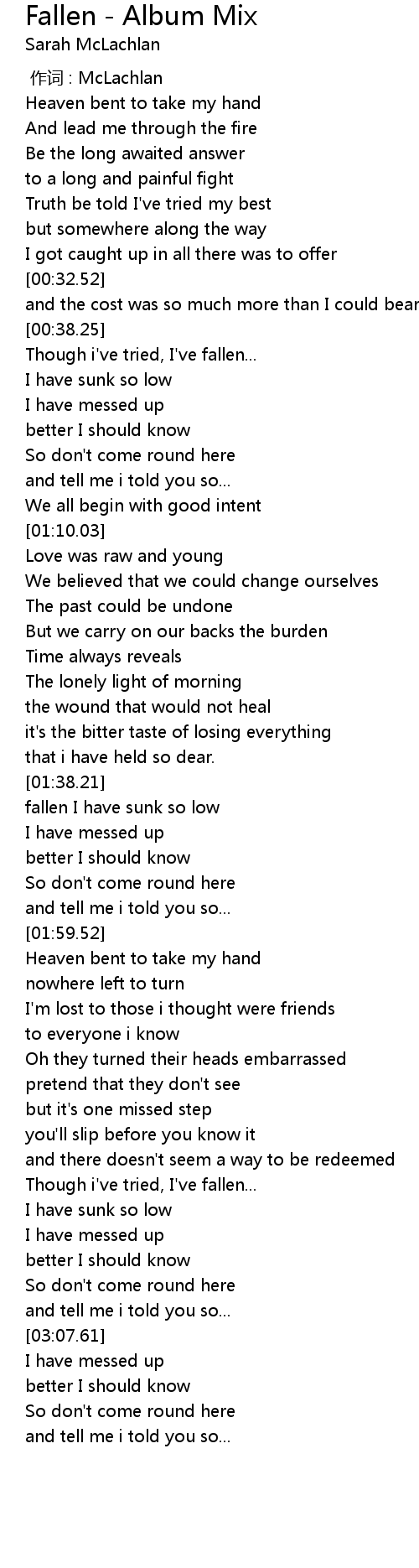 | [00:00.00] | zuo ci : McLachlan |