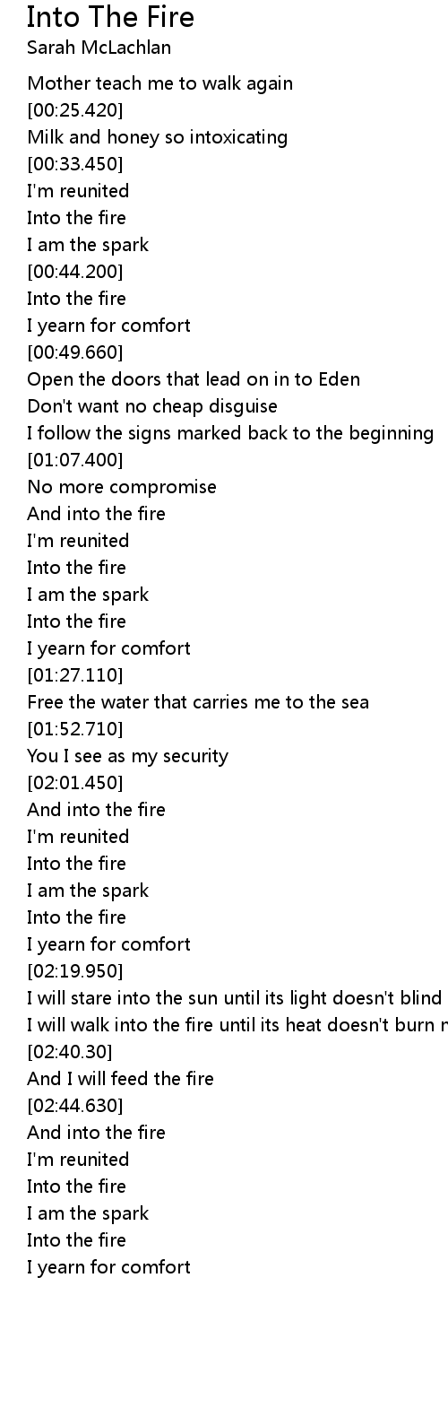 | [02:30.490] | I will walk into the fire until its heat doesn't burn me |