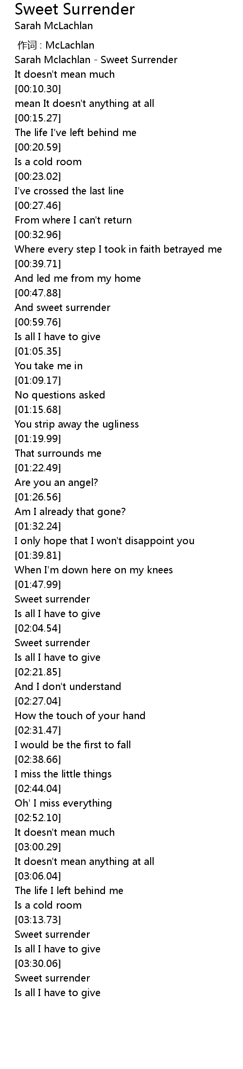 | [03:32.24] | Sweet surrender |