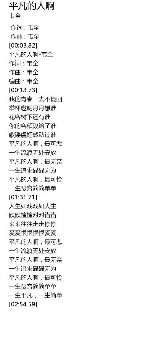 | [02:33.68] | 平凡的人啊,最可怜 |