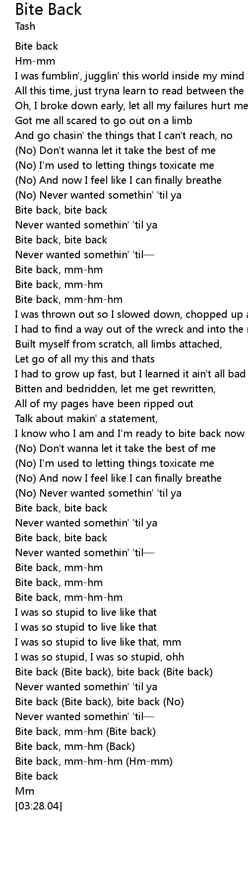 | [03:00.34] | Bite back (Bite back), bite back (No) |