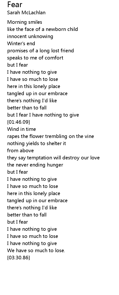but I fear I have nothing to give |