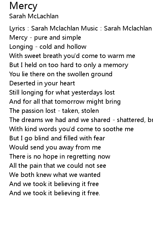 | Lyrics: Sarah Mclachlan Music: Sarah Mclachlan | |