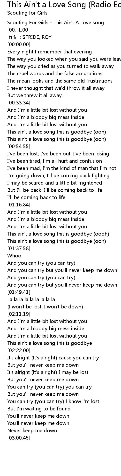 | [00:41.83] | This ain't a love song this is goodbye (ooh) |