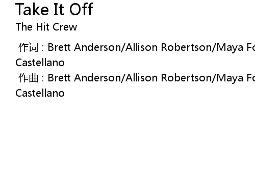 | [00:00.00-1] | 作曲 : Brett Anderson/Allison Robertson/Maya Ford/Torry Castellano |
