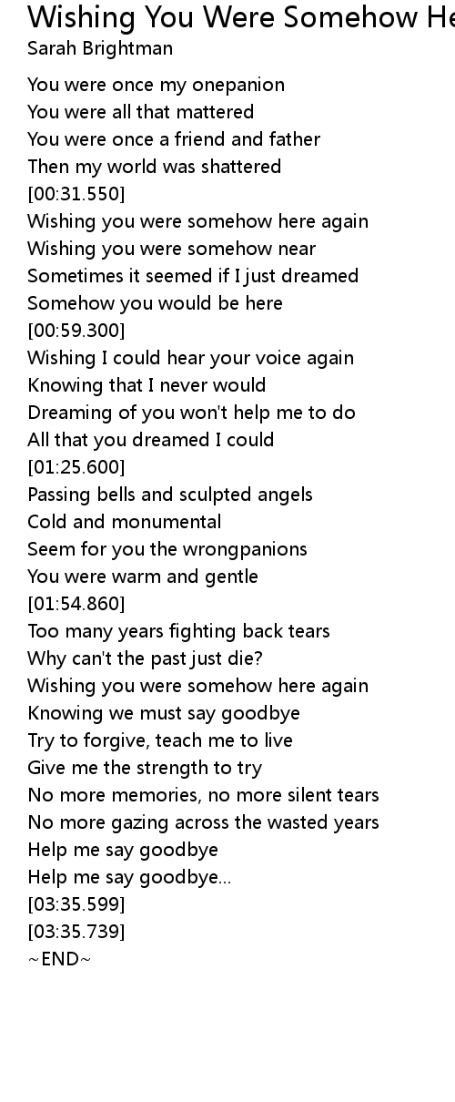 | [00:32.650] | Wishing you were somehow here again |