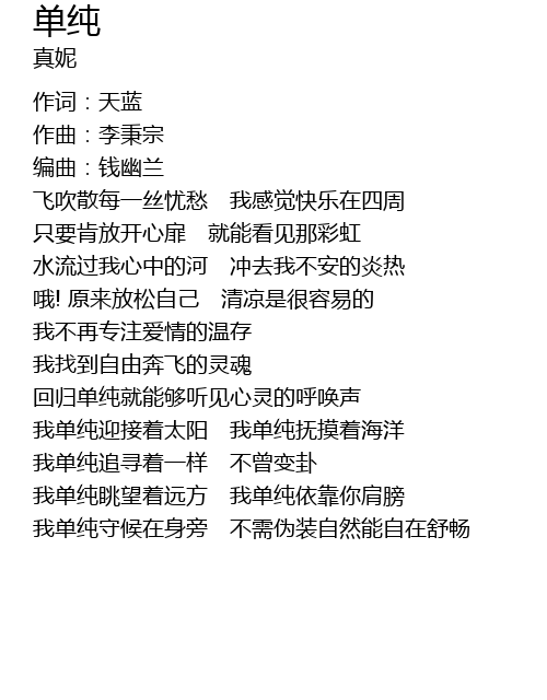 | wǒ dān chún shǒu hòu zài shēn páng bù xū wěi zhuāng zì rán néng zì zài shū chàng |