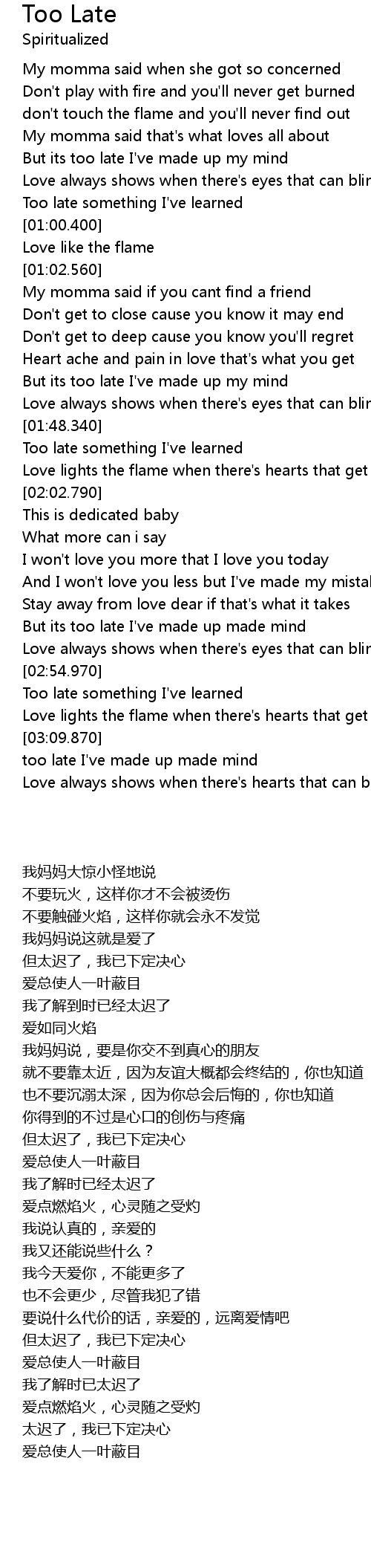 | [02:29.140] | And I won't love you less but I've made my mistakes |