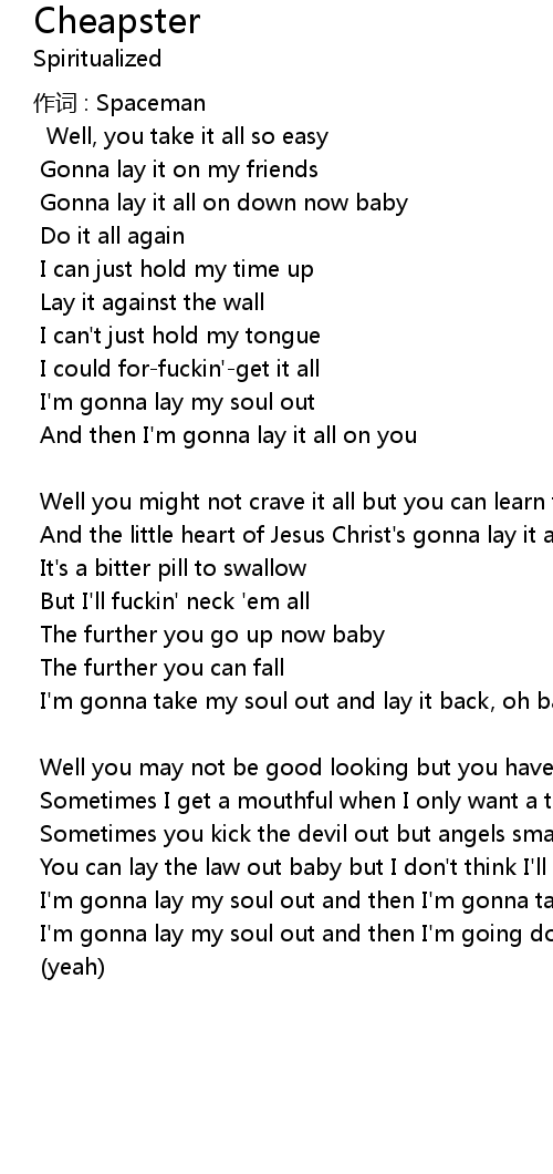 | I' m gonna lay my soul out and then I' m gonna take it out again | |