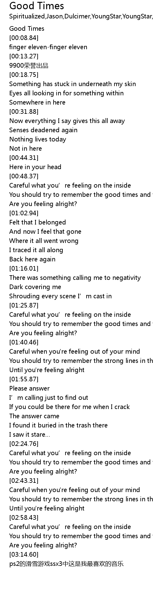 | [02:45.01] | Careful when you're feeling out of your mind |