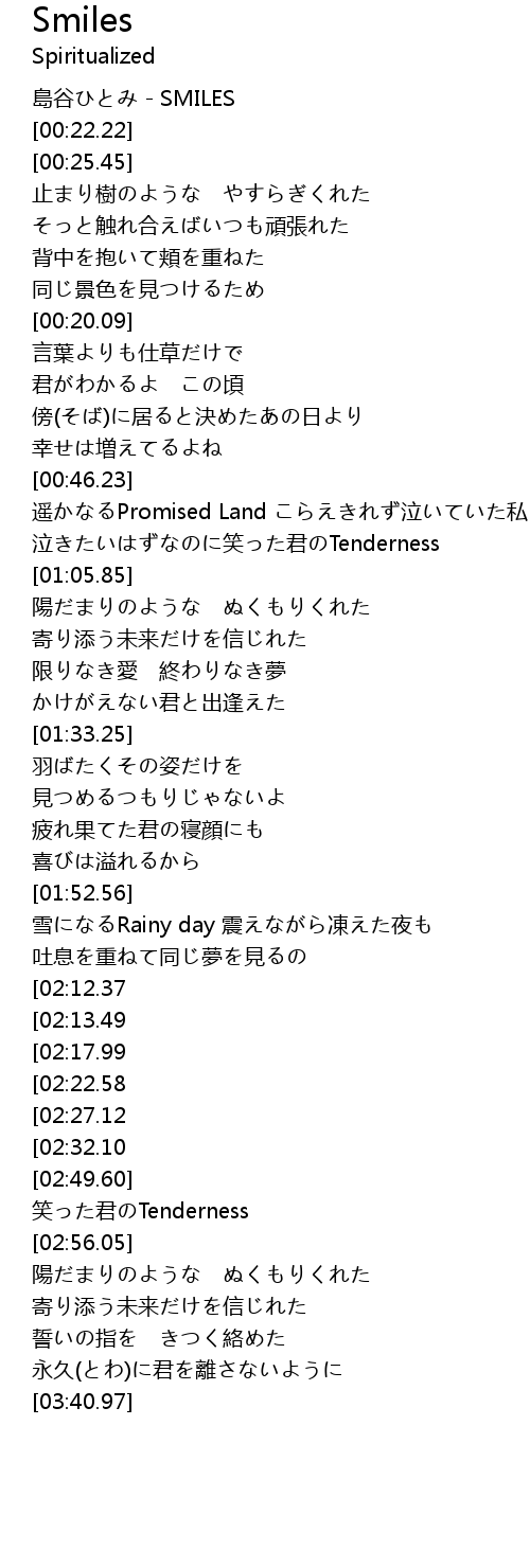 | [00:21.39] | 島谷ひとみ - SMILES |