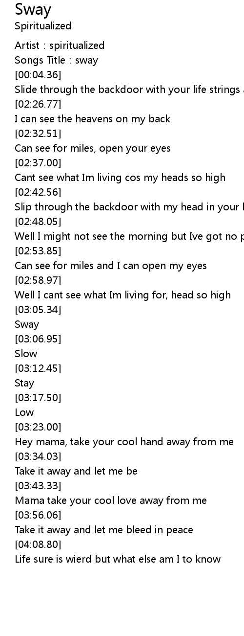| [03:06.08] | Sway |