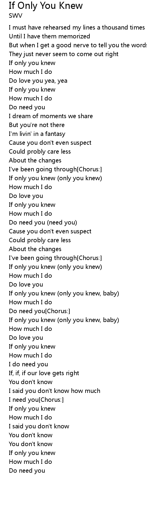 If Only You Knew Lyrics