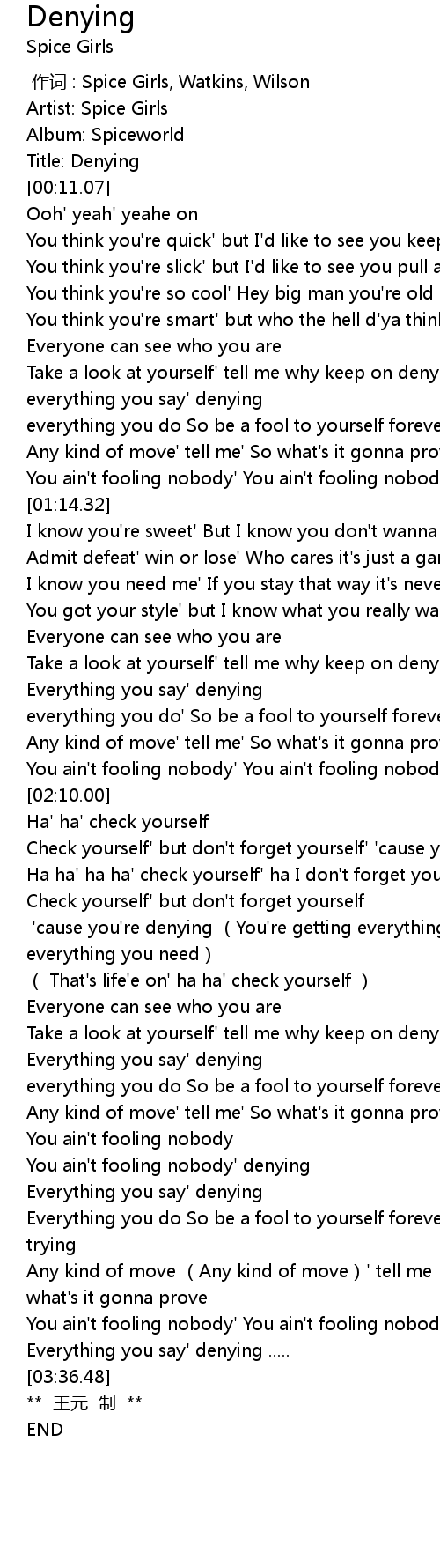 | [00:00.00] | zuo ci : Spice Girls, Watkins, Wilson |