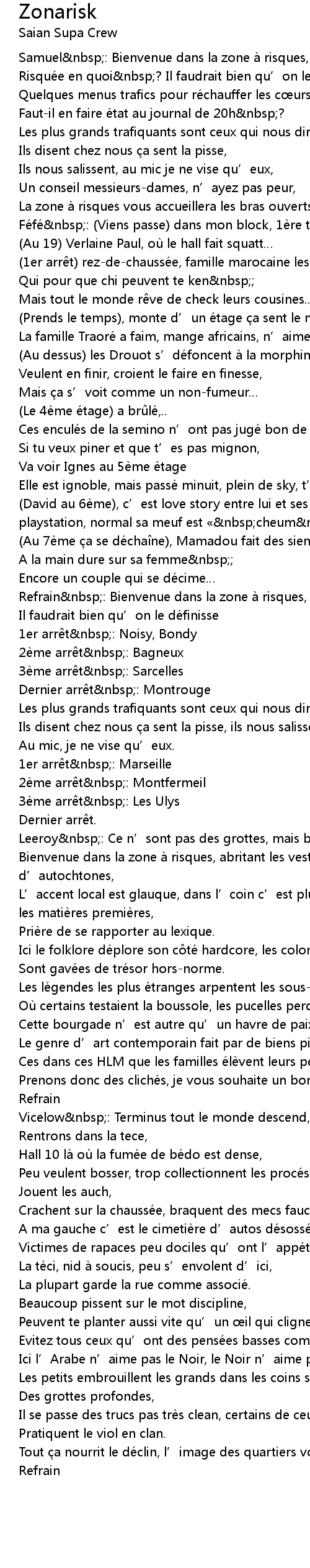 | Refrain nbsp: Bienvenue dans la zone à risques, risqué e en quoi nbsp? | |