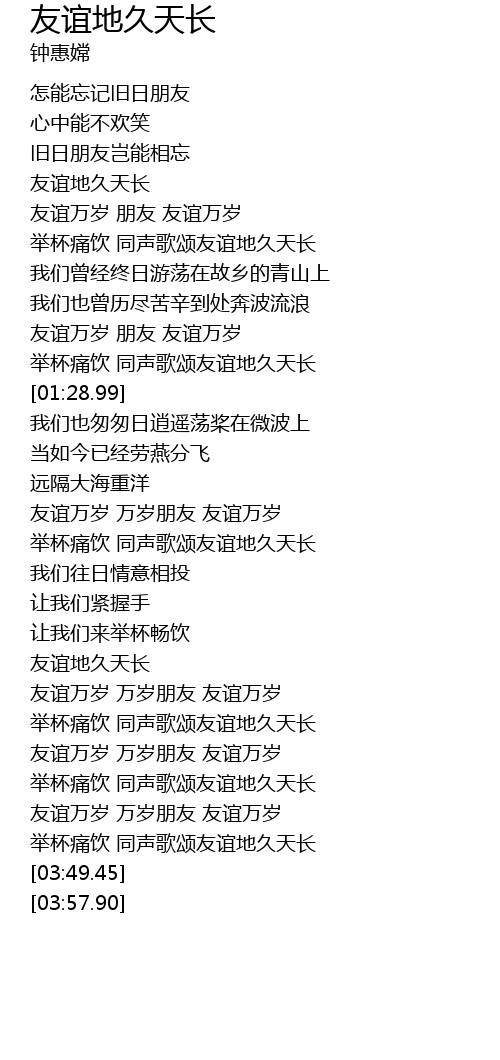 | [03:39.72] | 举杯痛饮 同声歌颂友谊地久天长 |