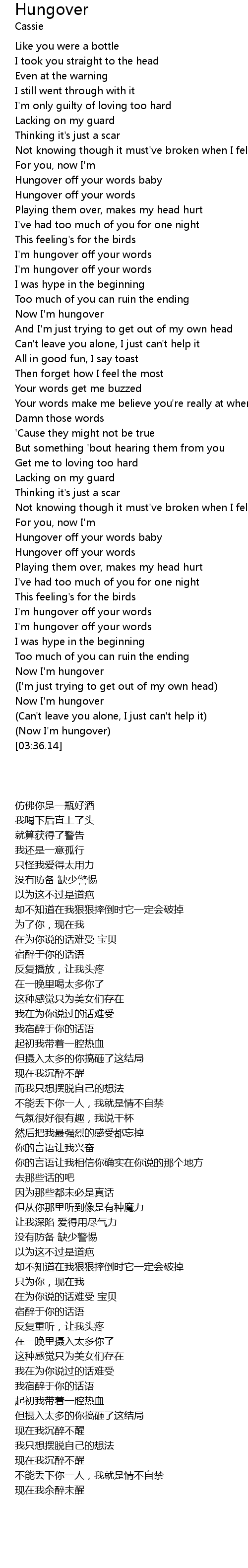 | [03:32.59] | (Now I'm hungover) |
