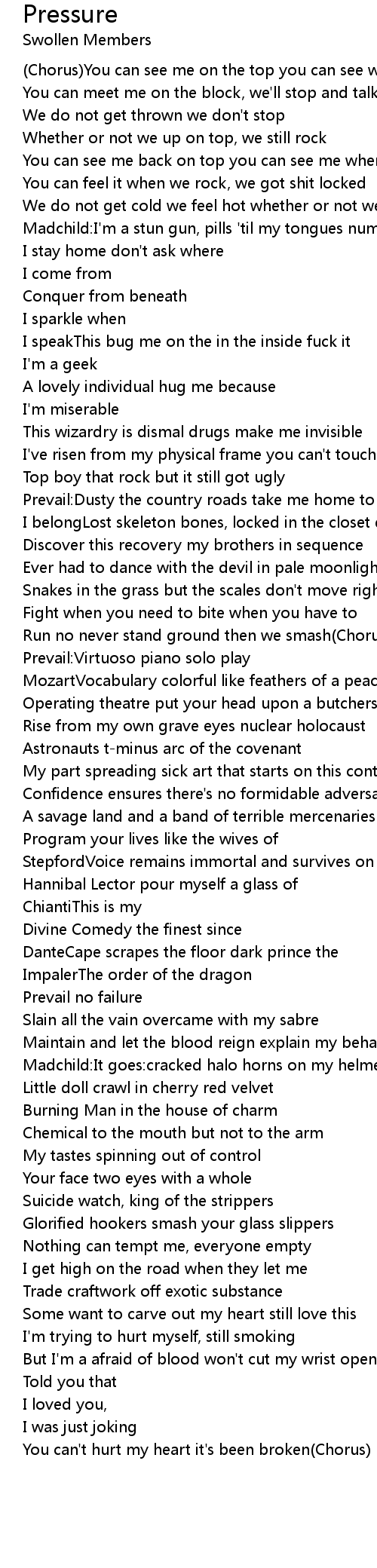 Pressure Lyrics