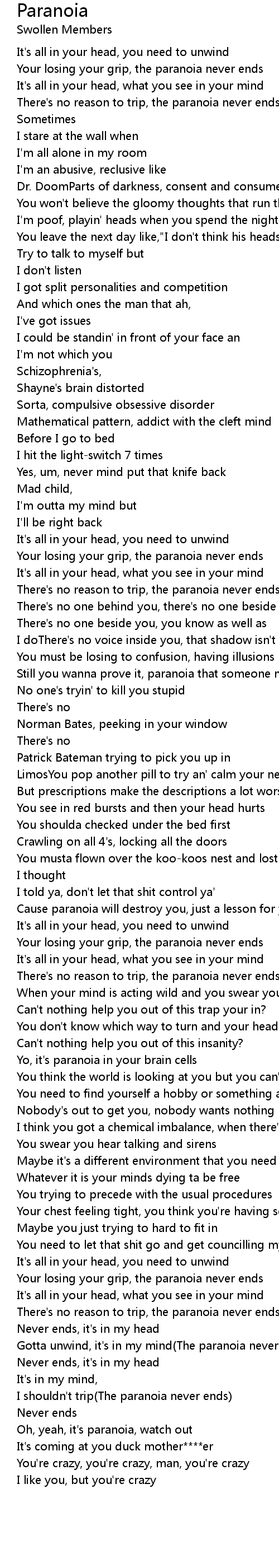 There's no reason to trip, the paranoia never ends |