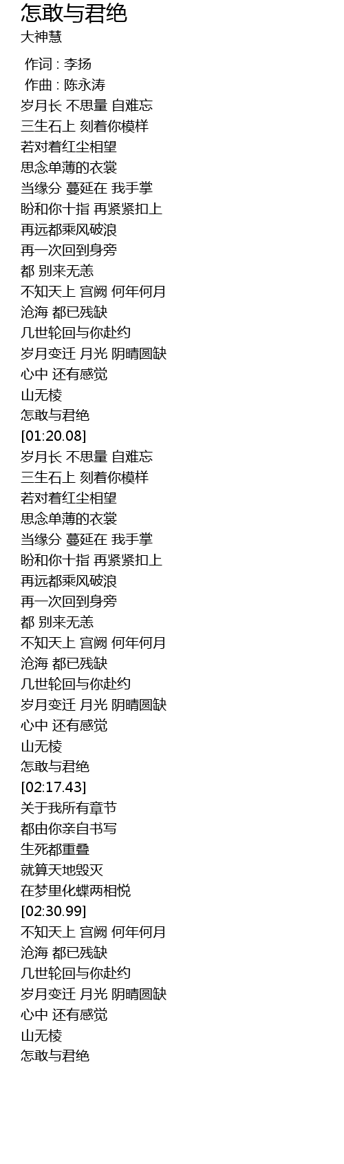 | [02:45.73] | suì yuè biàn qiān yuè guāng yīn qíng yuán quē |