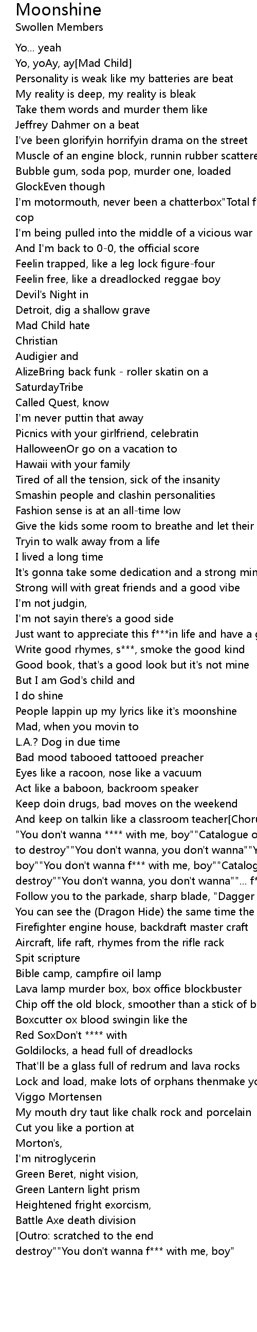 And keep on talkin like a classroom teacher[Chorus: samples of Mad Child scratched]"You don't wanna **** with me, boy""Catalogue of carnage, I am armed to destroy""You don't wanna, you don't wanna""You don't wanna f*** with me, boy""You don't wanna f*** with me, boy""Catalogue of carnage, I am armed to destroy""You don't wanna, you don't wanna""... f*** with me, boy"[Prevail] |