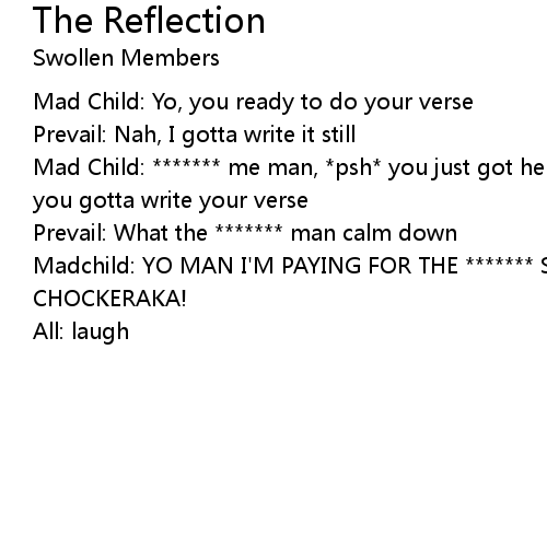 | Mad Child: ******* me man, *psh* you just got here like two hours late and now you gotta write your verse | |