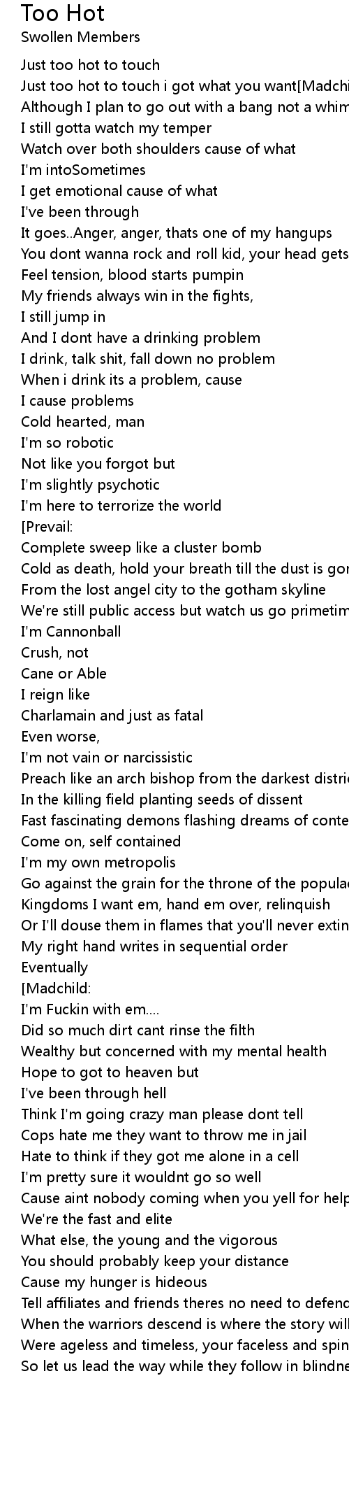 Just too hot to touch i got what you want[Madchild:] |